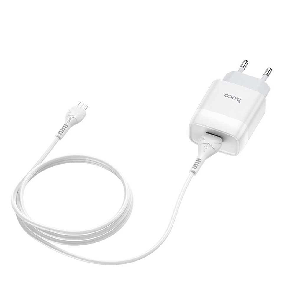 Сетевое зарядное устройство HOCO C72A Glorius single 1xUSB с Кабелем USB - Micro, 2.1A, 10W, белый