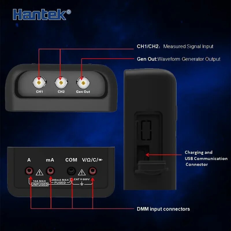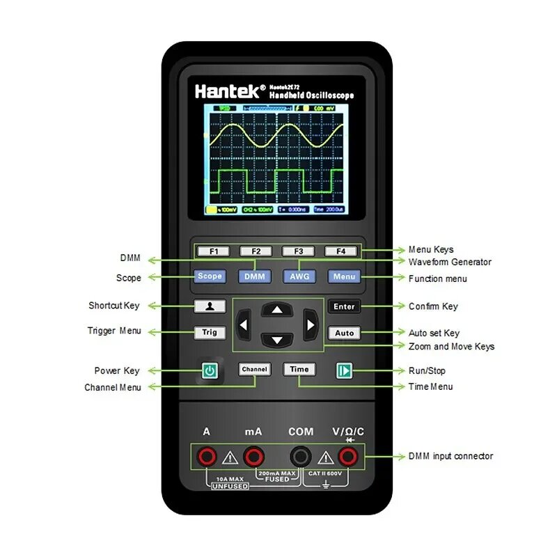 Осциллограф портативный (oscilloscope) Hantek, 2 канала, 70 МГц, цифровой мультиметр и генератор сигналов 2D72