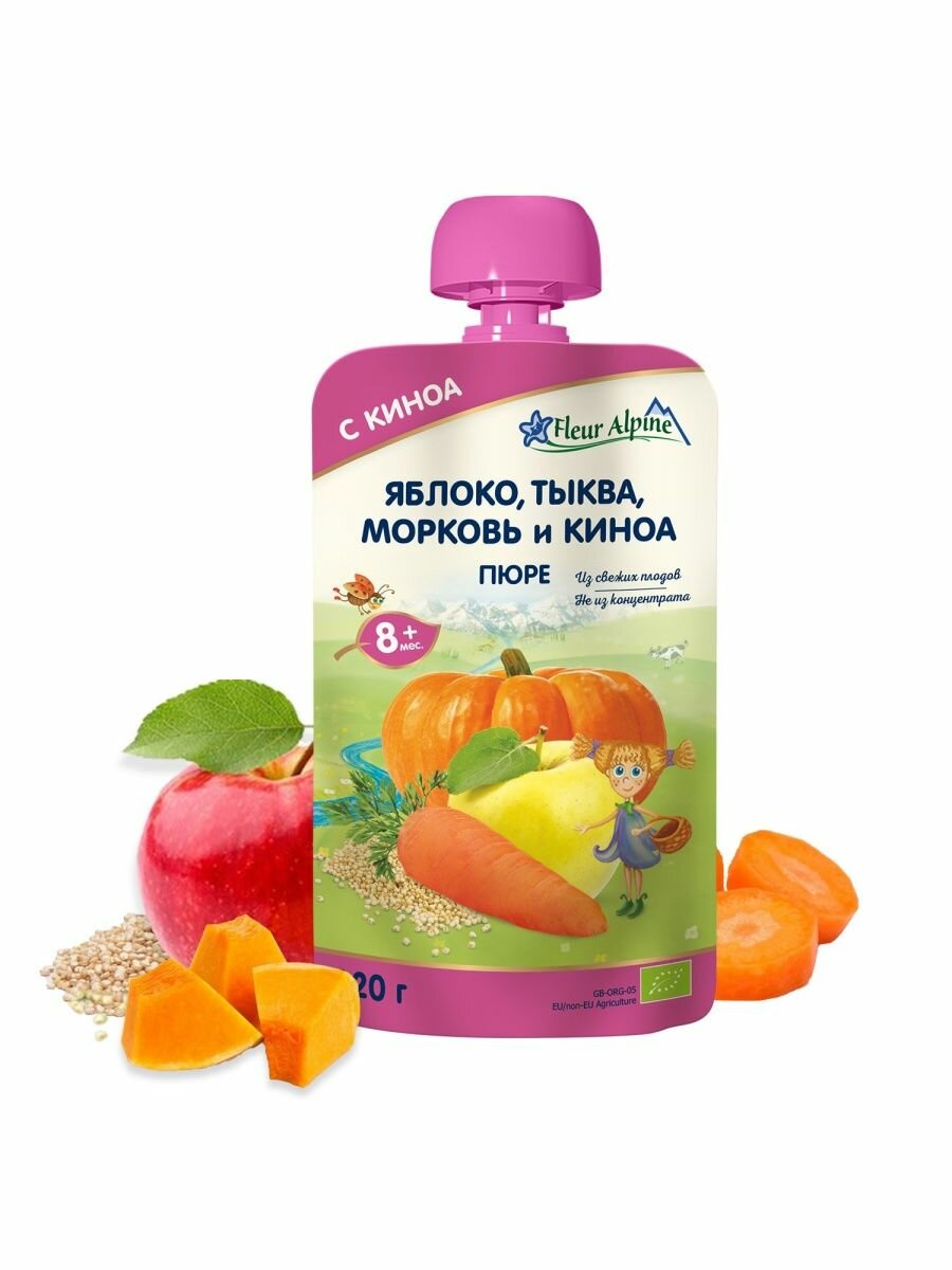 Купить Пюре детское Fleur Alpine яблоко, тыква, морковь И киноа, с 8 месяцев, 120 г (6 штук)