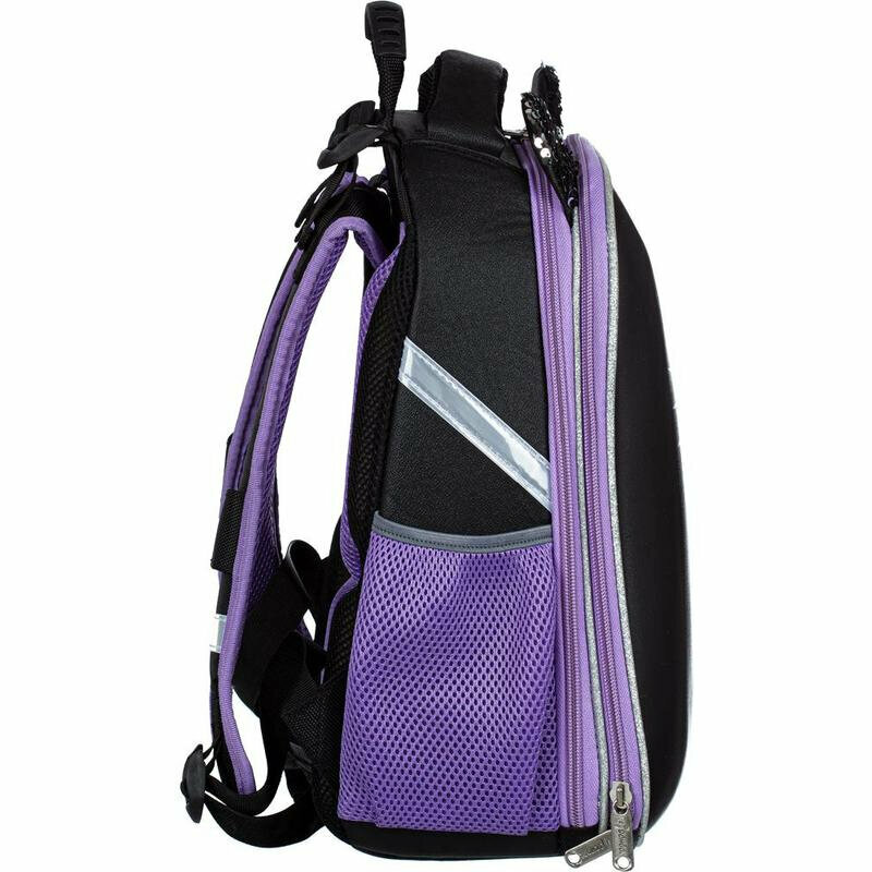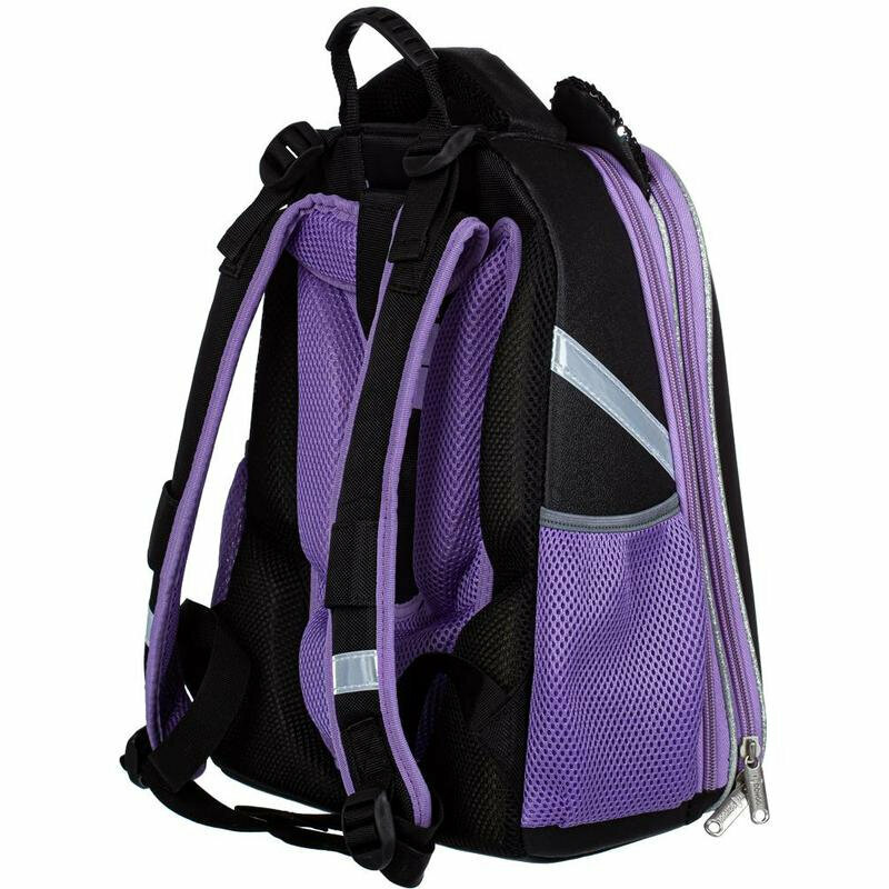 Ранец школьный №1 School Kitty Black, портфель анатомический для девочки, 2 отделения, 4 кармана