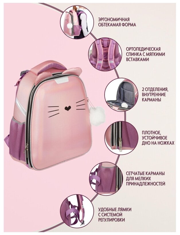 Ранец школьный Комус Kitty, портфель анатомический для девочки, 2 отделения, 4 кармана