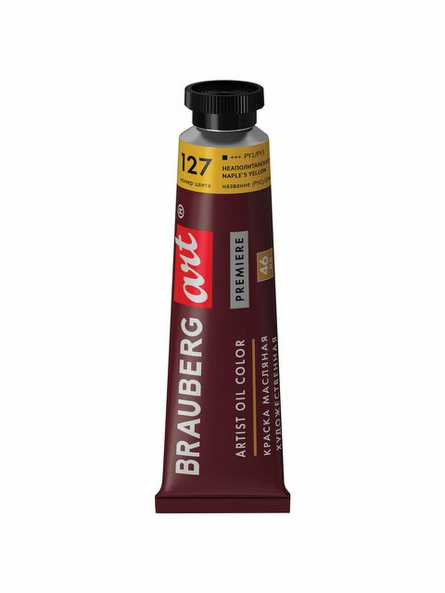 Краска масляная художественная BRAUBERG ART PREMIERE, 46 мл, проф. серия, неаполитанская желт 191402