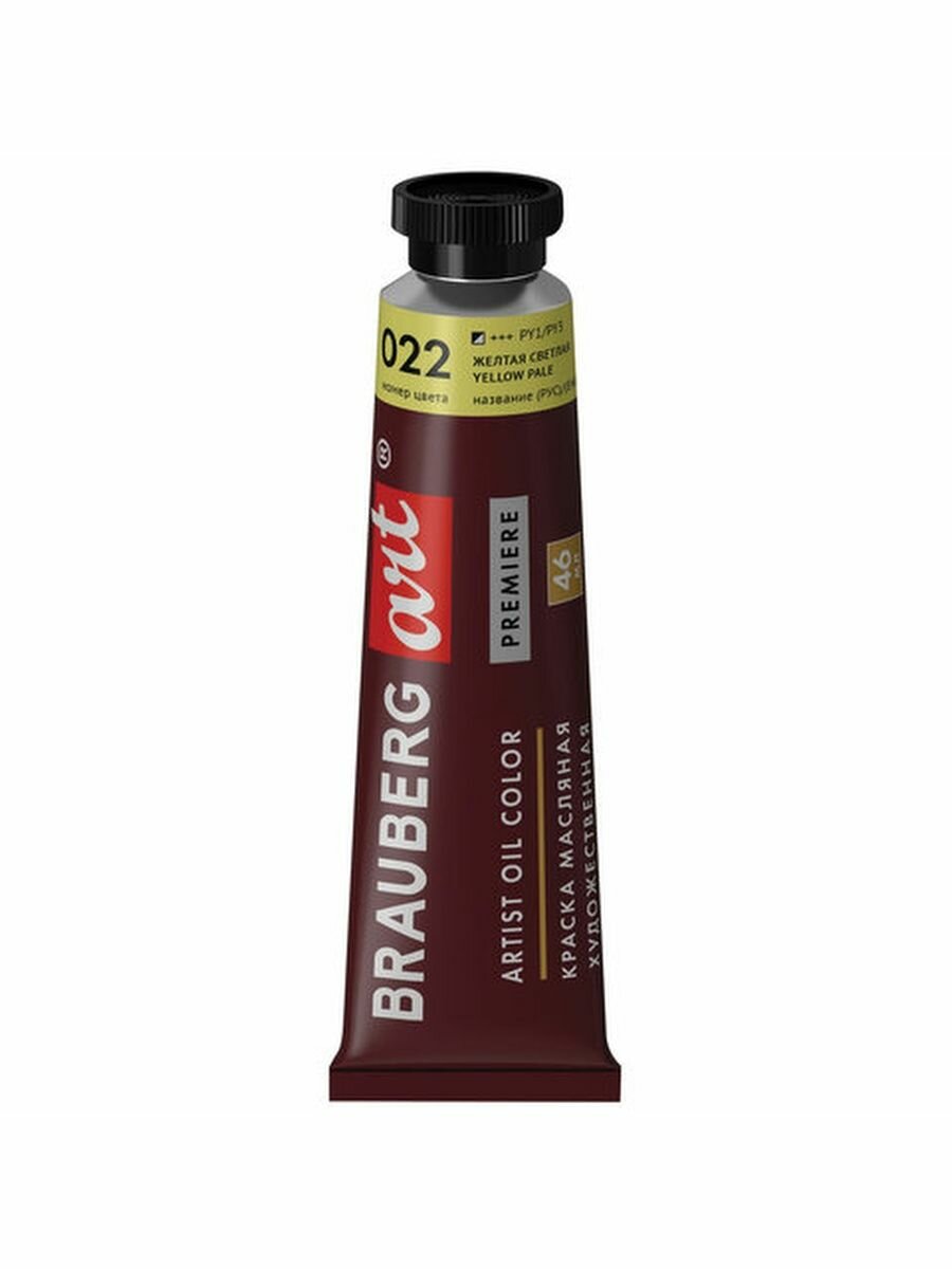 Краска масляная художественная Brauberg ART PREMIERE, 46 мл, проф. серия, желтая светлая, 191399