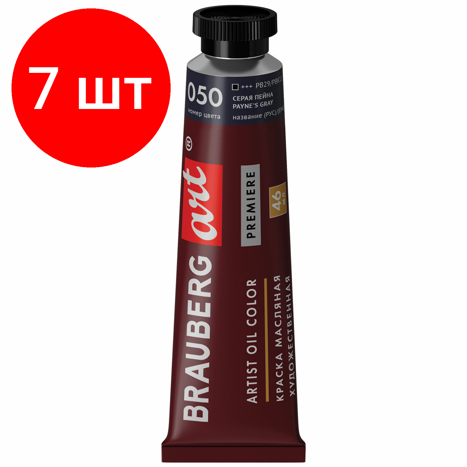 Комплект 7 шт, Краска масляная художественная BRAUBERG ART PREMIERE, 46 мл, проф. серия, холодная серая, 191450