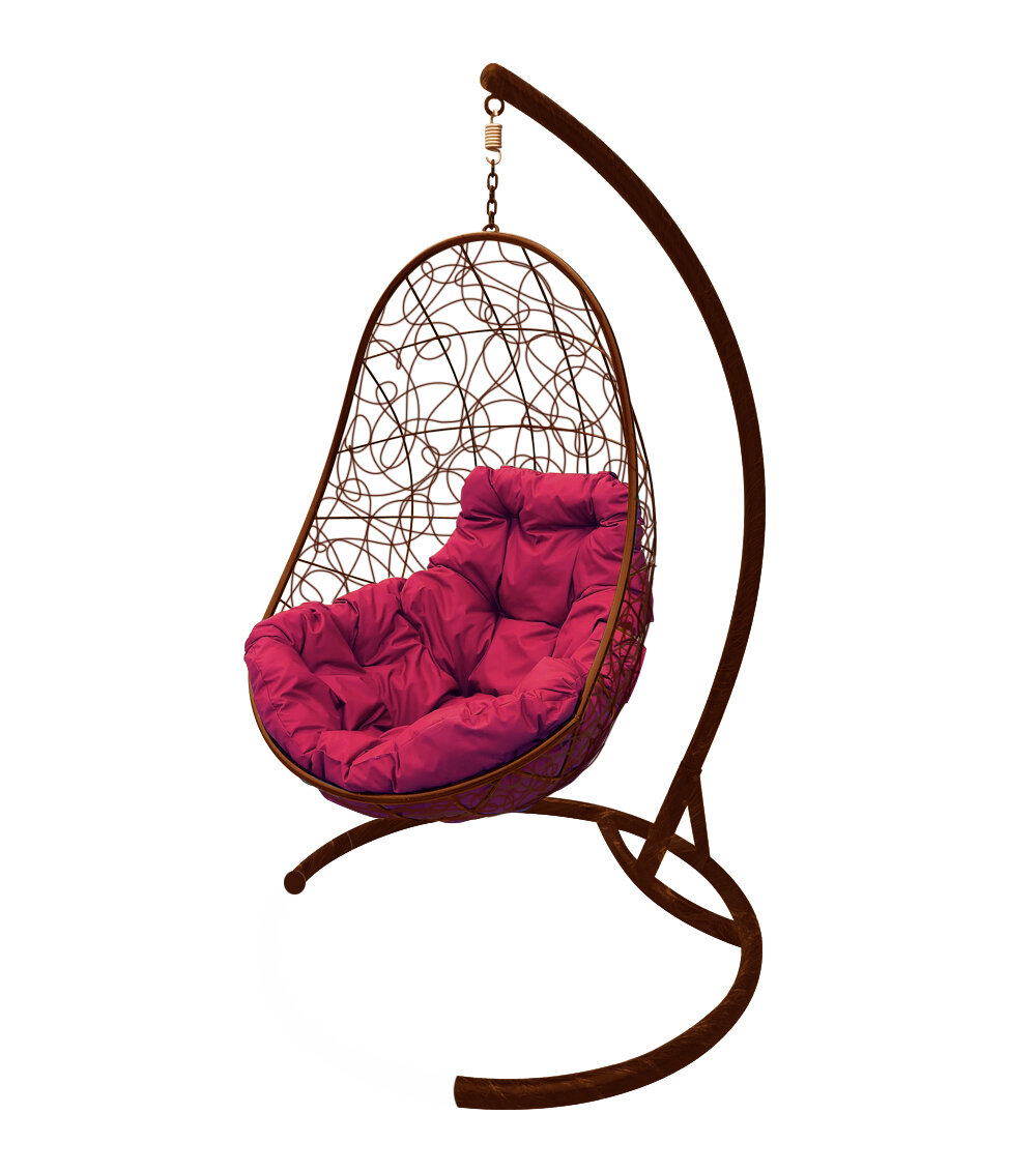 Купить Подвесное кресло овал с ротангом коричневое, бордовая подушка