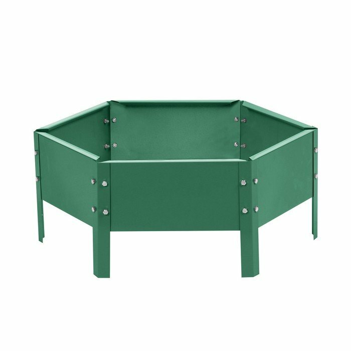Клумба садовая оцинкованная, одноярусная шестиугольная для дачи, сада и огорода, декоративное ограждение сборное для цветов, диаметр 140 см, высота 15 см, цвет желтый
