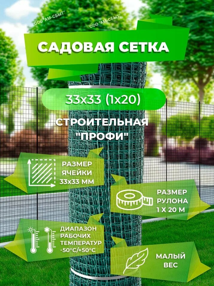Садовая сетка квадратная 33х33 (1 х20) Строительная "профи" зеленый интересное: