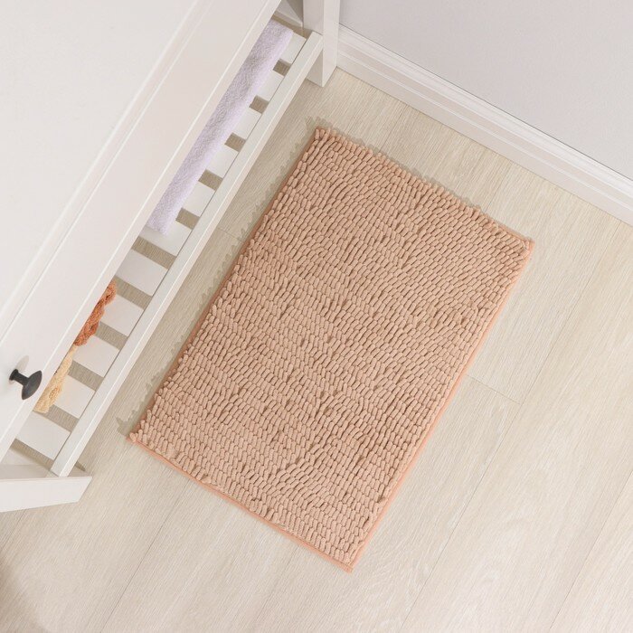 Коврик для ванной Доляна «Букли длинные», 40×60 см, цвет бежевый, длина букли 2 см