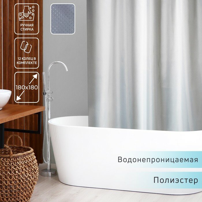 Штора для ванны Доляна «Орион», 180×180 см, полиэстер, цвет серебряный