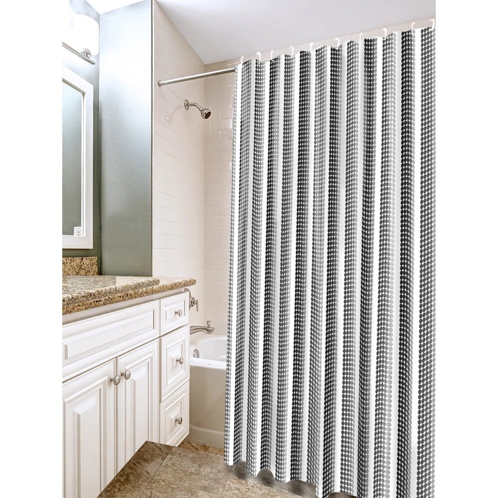 Купить Штора для ванной комнаты VILINA водонепроницаемая с рисунком занавес с кольцами 180х180 см Ритм чёрная