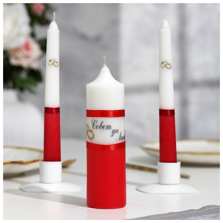 Купить Набор свадебных свечей "Совет да любовь" красный: родительские 1,8х17,5; очаг 4х13,5, "Мастерская «Свечной двор»"