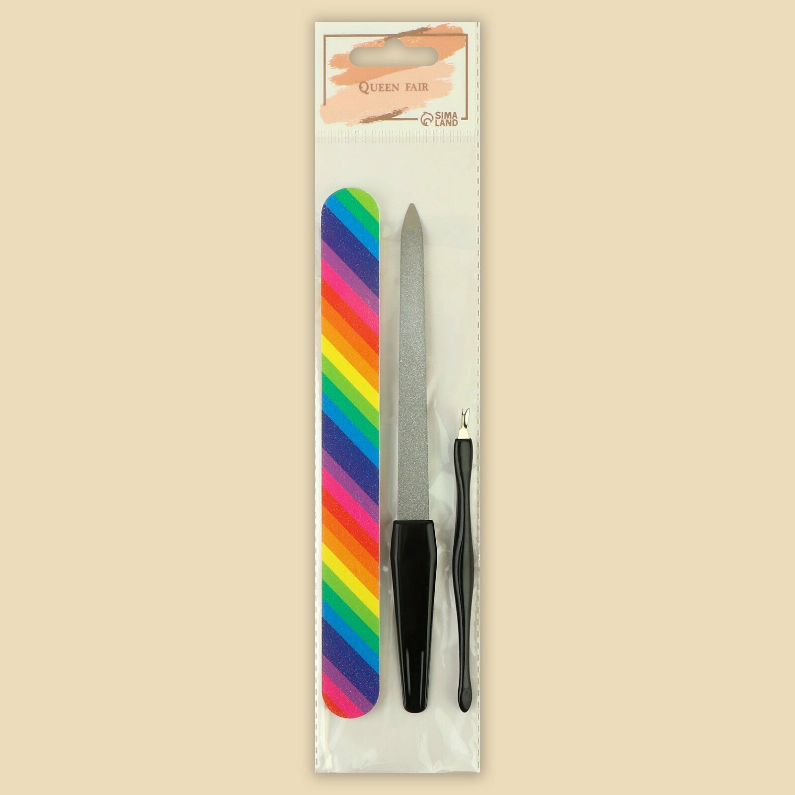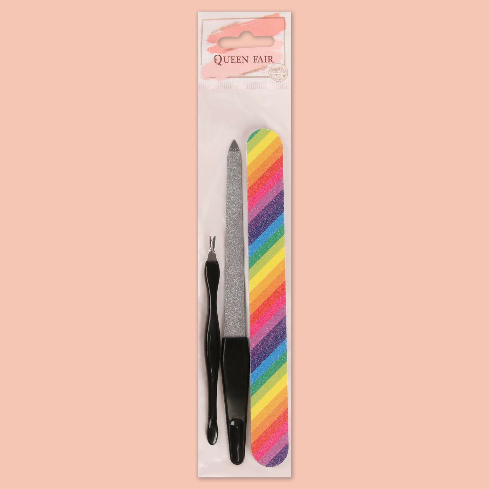 Набор маникюрный, 3 предмета, цвет чёрный/радужный, Queen fair