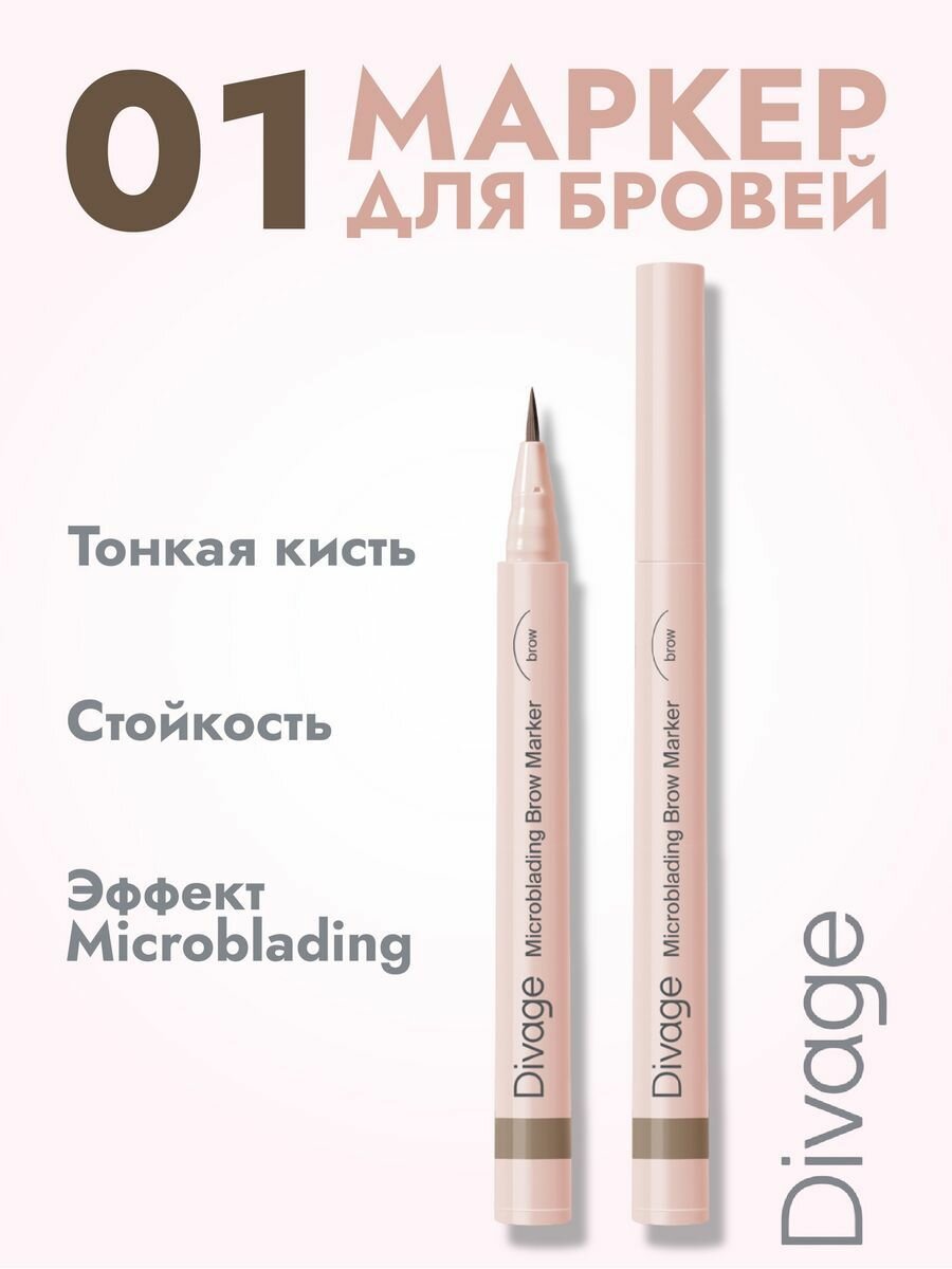 Divage Стойкий маркер для бровей с эффектом Microblading, Тон 01