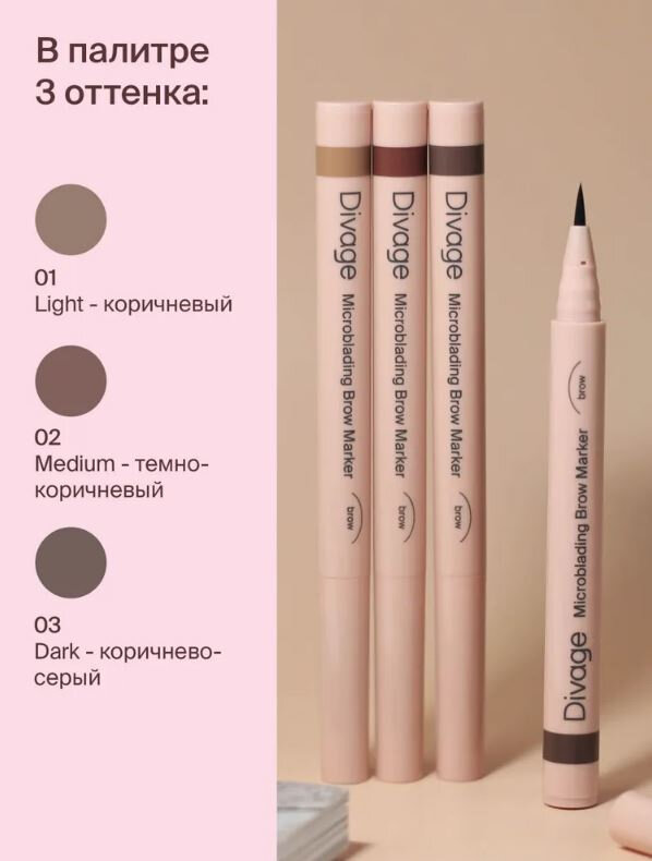 к_divage_маркер д/бров.с эф.microblading_тон 01 светло-коричневый 842016000