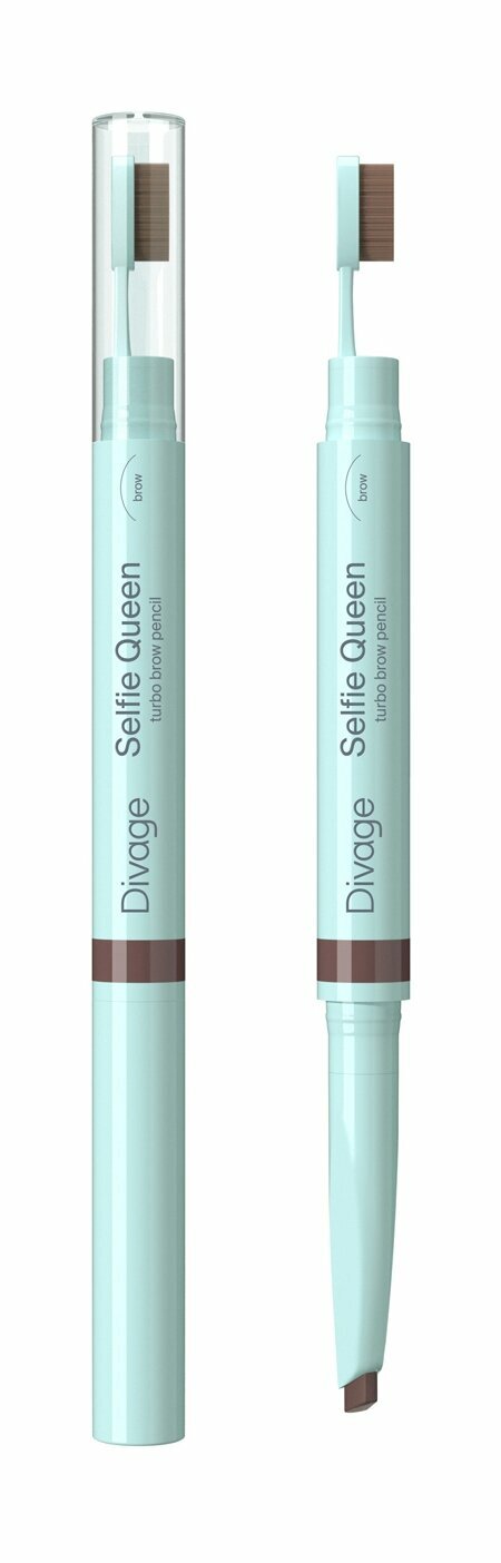 Divage / Диваж Карандаш для бровей Selfie Queen Turbo 02 для любого типа кожи с 18 лет коричневый с щеточкой 3г / декоративная косметика
