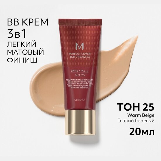 Купить MISSHA М Perfect Cover BB Cream RХ Тональный BB крем "Естественное покрытие" SPF42/PA тон 25 20 мл