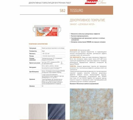 Декоративное покрытие parade deco tessuro с эф.шелк.нитей белое, арт.s82 белый 5кг