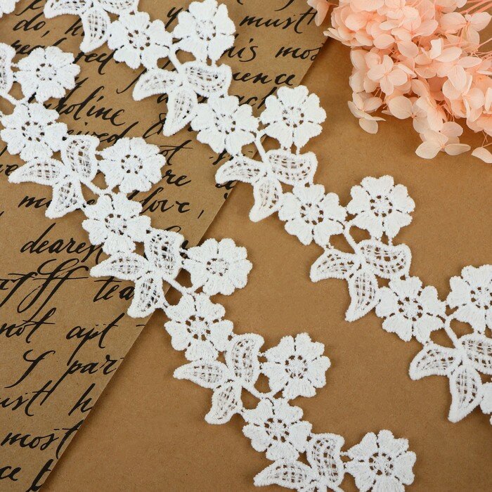 Кружево гипюровое, 50 мм ? 14 1 м, цвет белый 2785935 .