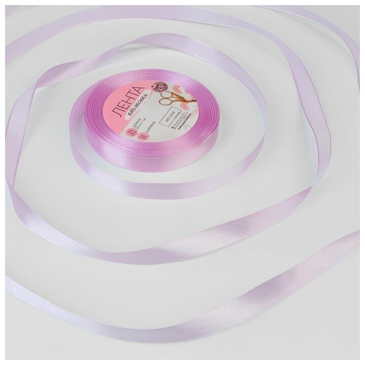 Купить Лента атласная, 12 мм x 23 1 м, цвет сиреневый №76./В упаковке шт: 1