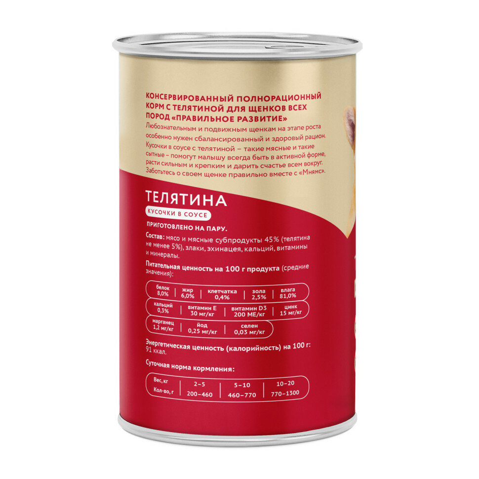 Влажный корм для щенков Мнямс Правильное развитие, телятина 400 г