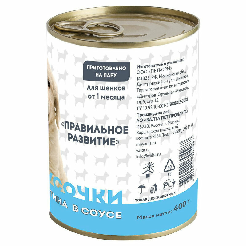 Купить Консервы для щенков Мнямс "Правильное развитие" с телятиной в соусе 400 г.