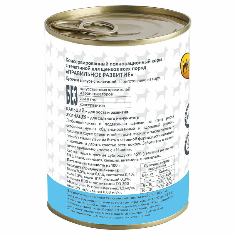 Влажный корм для щенков Мнямс Правильное развитие, телятина 400 г