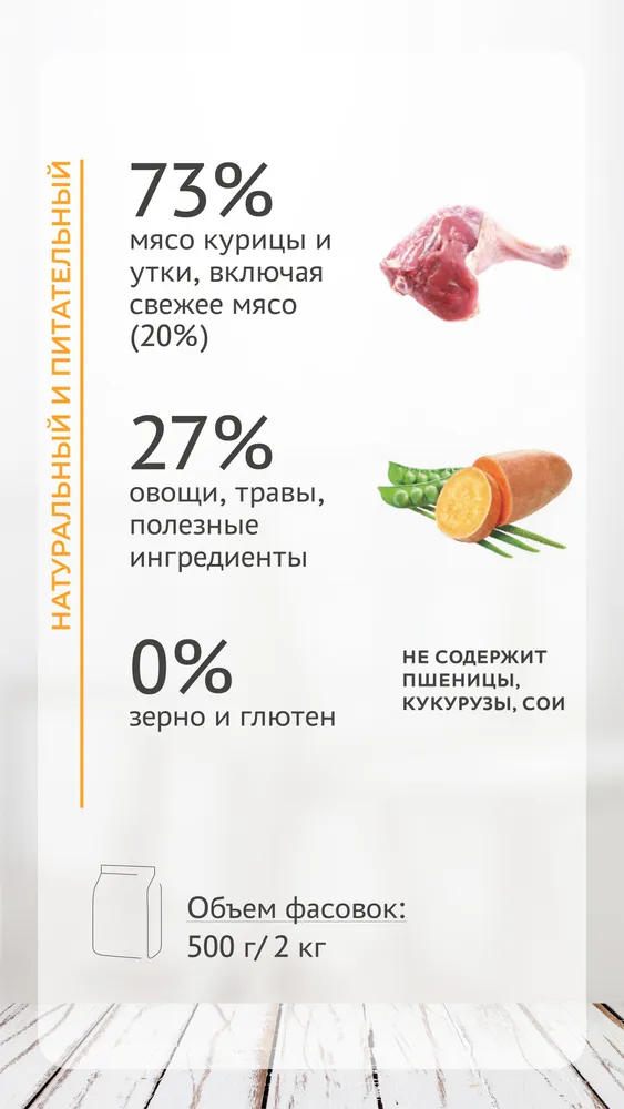 Elato Holistic корм для щенков мелких пород с курицей и уткой, 500 г