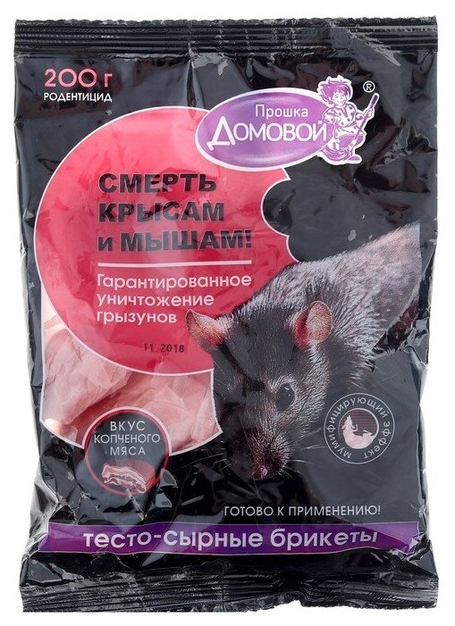 Средство от крыс и мышей Домовой Прошка Тестосырный брикет со вкусом копченого мяса (200 г пакет)