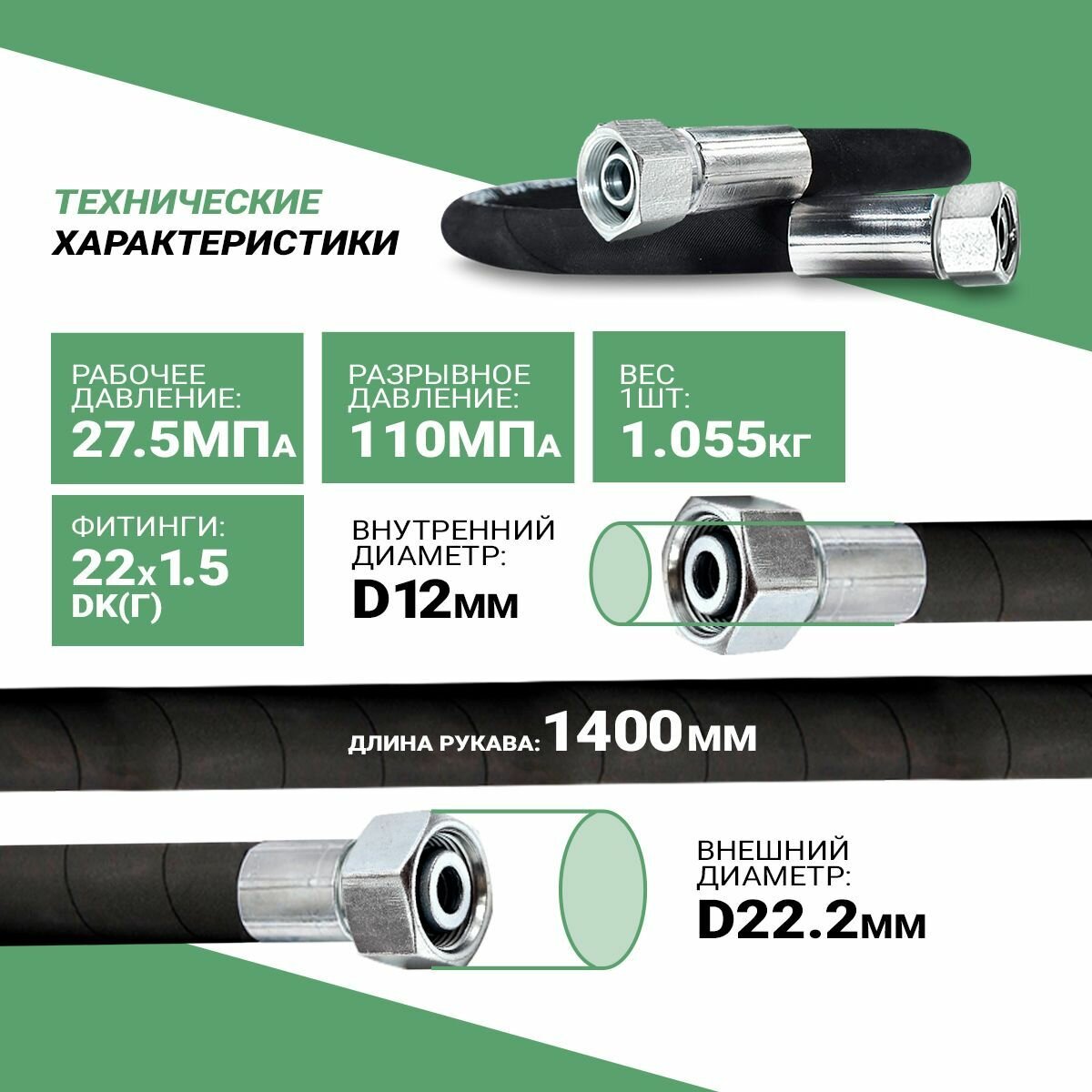 Гидравлический РВД (шланг) 12*1400 М 22*1,5 2SN интересное: