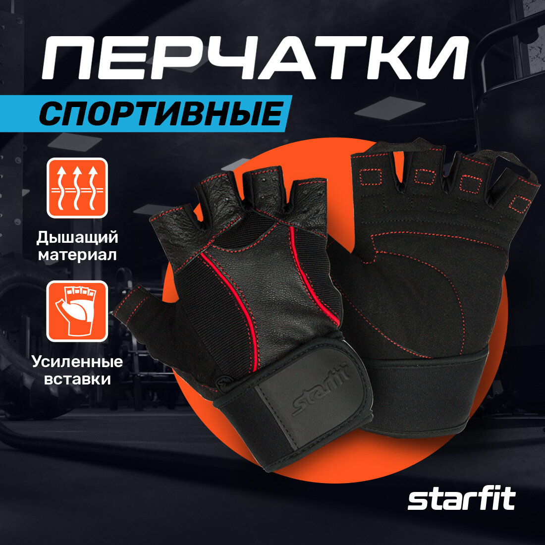 Перчатки атлетические Starfit SU-120 черный S