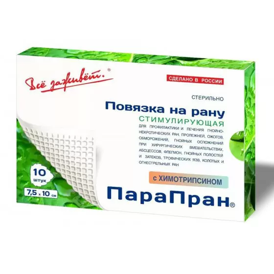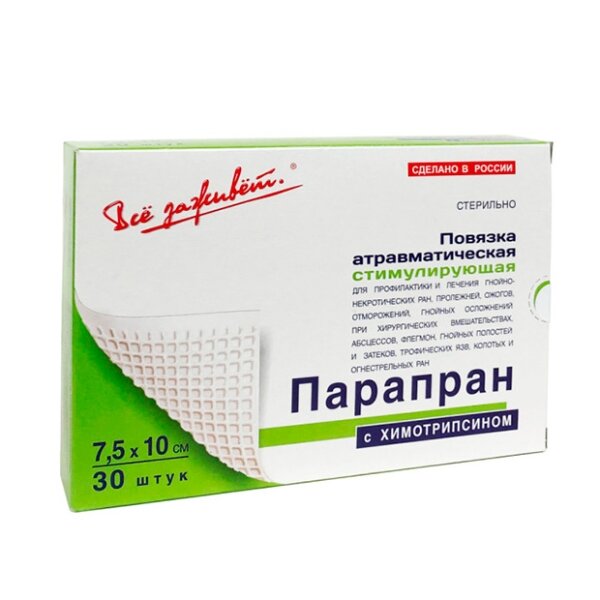 ПараПран с химотрипсином - повязка для очищения гнойных ран, 7,5x10 см (30 шт.)