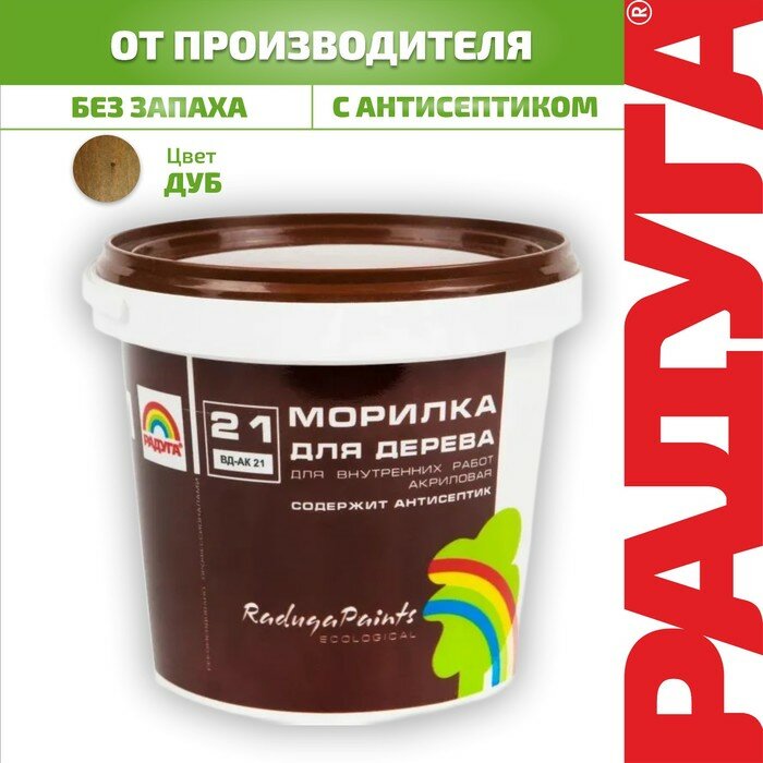 Морилка акриловая акрилатная Радуга 21 вд-ак 21 цвет дуб 1кг для внутренних работ