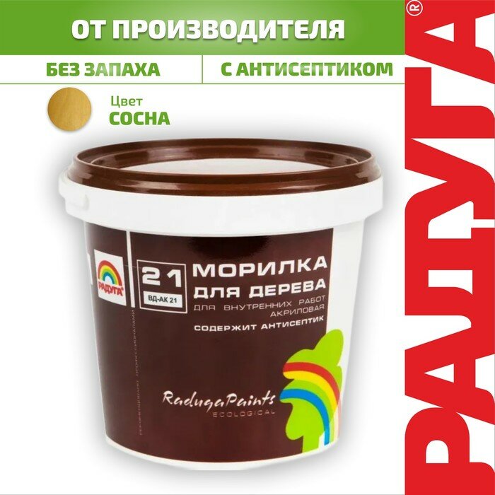 Морилка акриловая акрилатная Радуга 21 вд-ак 21 цвет сосна 1л для внутренних работ без запаха Оригинальный продукт