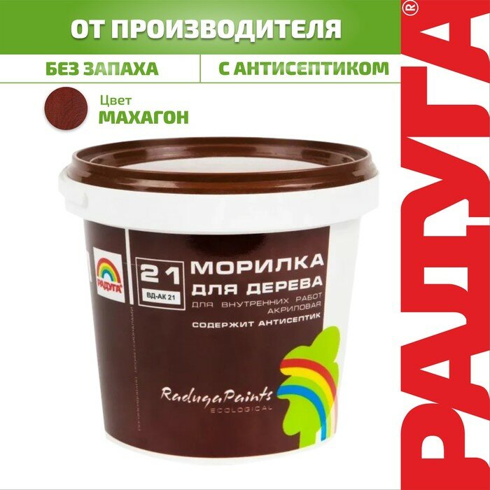 Морилка акриловая акрилатная Радуга 21 вд-ак 21 цвет Махагон 1л для внутренних работ без запаха