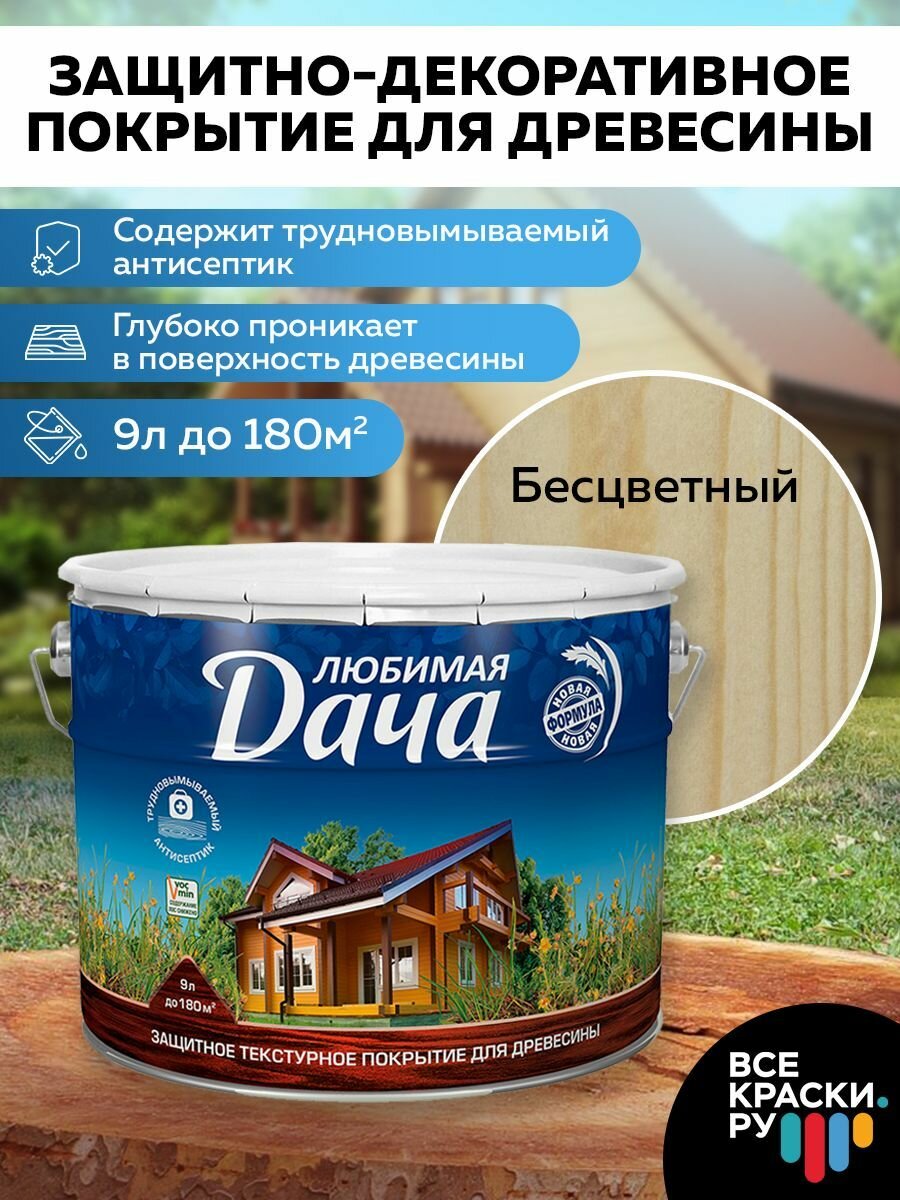 Защитно-декоративное покрытие для древесины Любимая Дача (9л) бесцветный