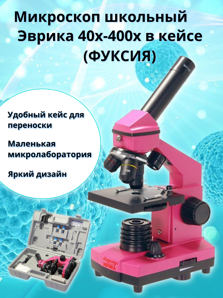 Школьный биологический микроскоп в кейсе Микромед Эврика 40х-400х Фуксия