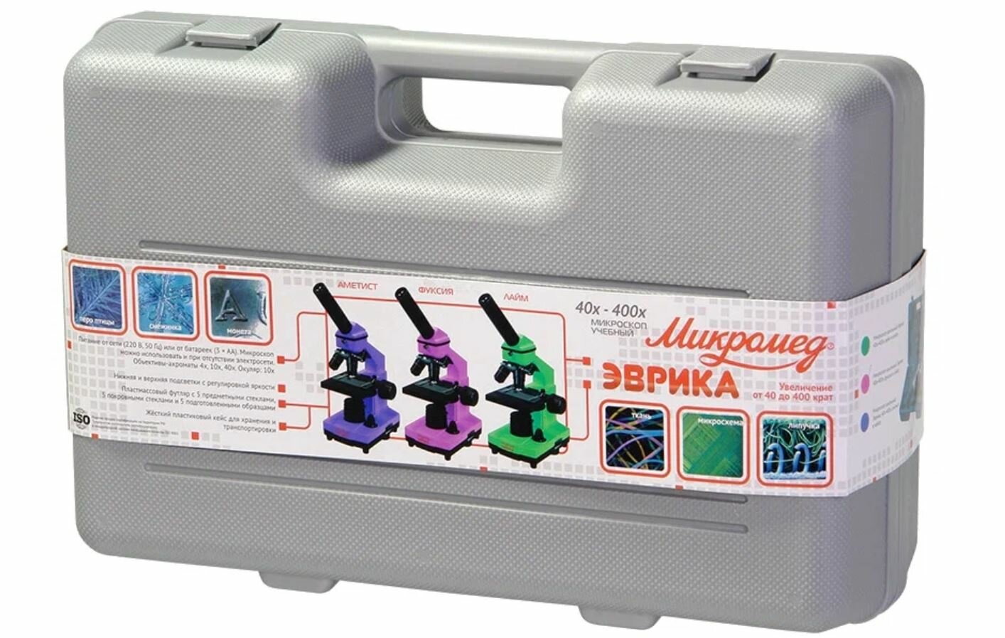 Школьный микроскоп Микромед Эврика 40х-400х в кейсе (аметист)