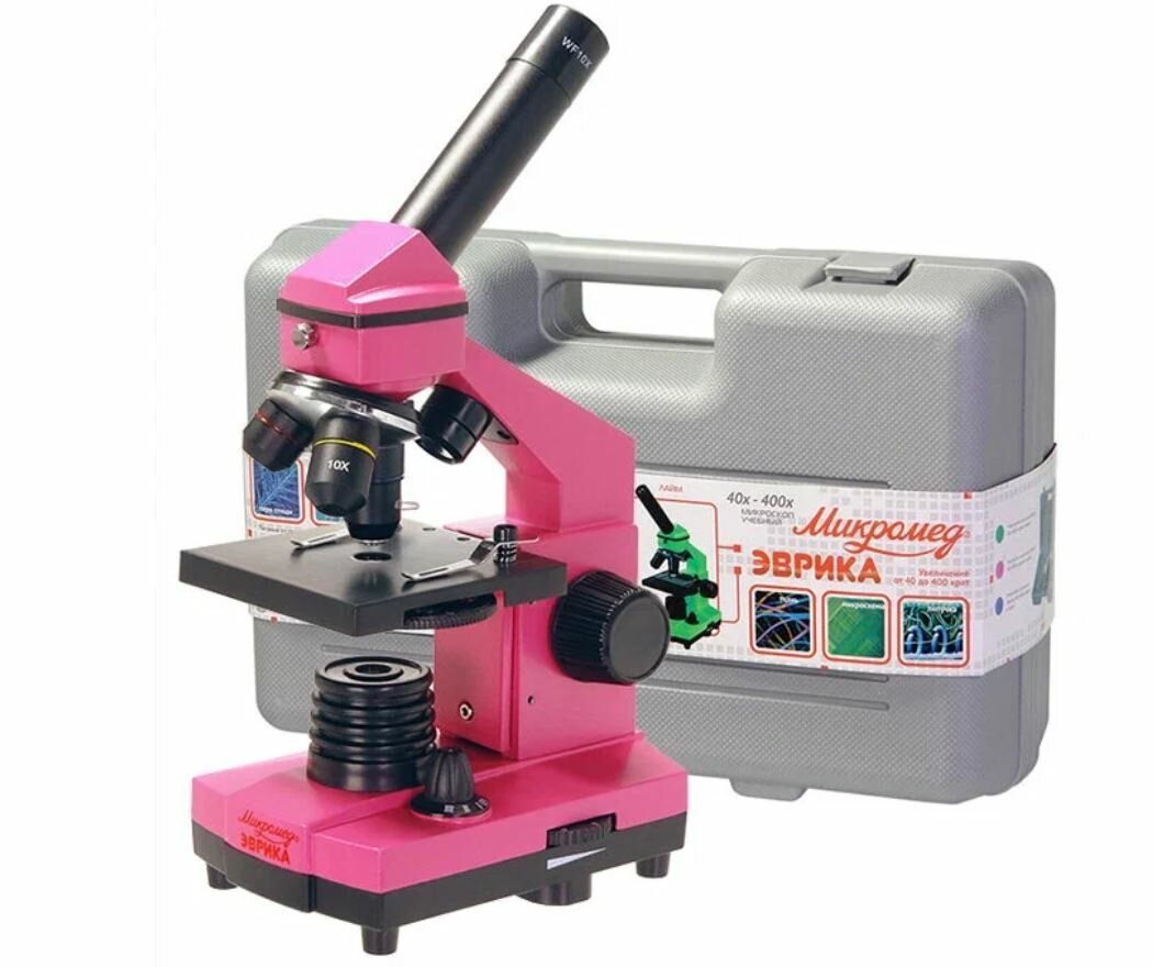 Микроскоп Микромед «Эврика» 40х–400х, фуксия, в кейсе