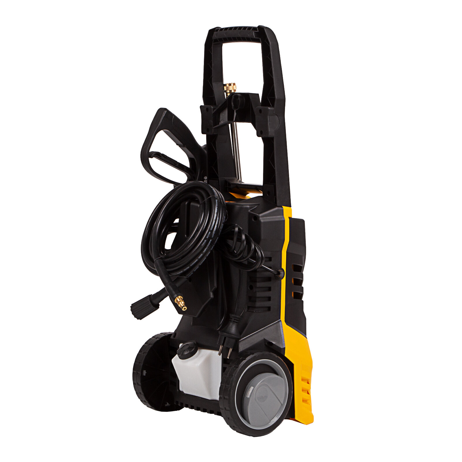 Хорошее давление. Удобная рукоятка пистолета и вращающийся в ней штуцер шланга высокого давления. Съемная штанга из металла. Легкость изменения горизонта струи поворотом сопла. Фильтр во входном съемном штуцере. Есть отсек для хранения штанги и место для намотки провода |