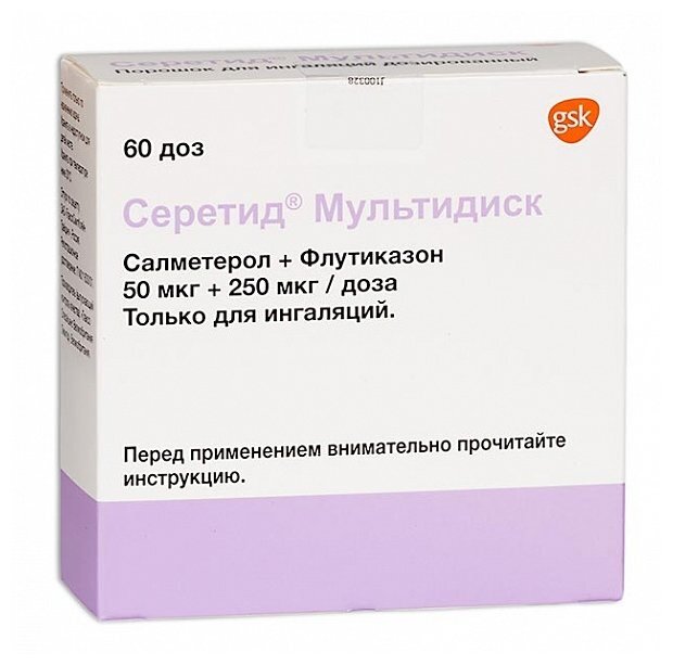 Серетид Мультидиск порошок для ингаляций дозированный 50 мкг+100 мкг/доза 60 доз 1 шт