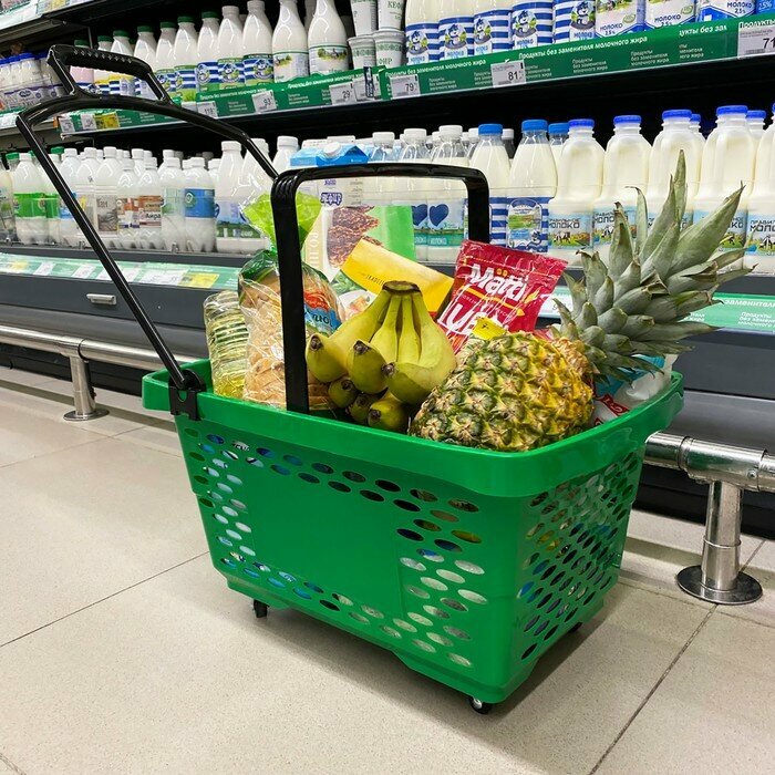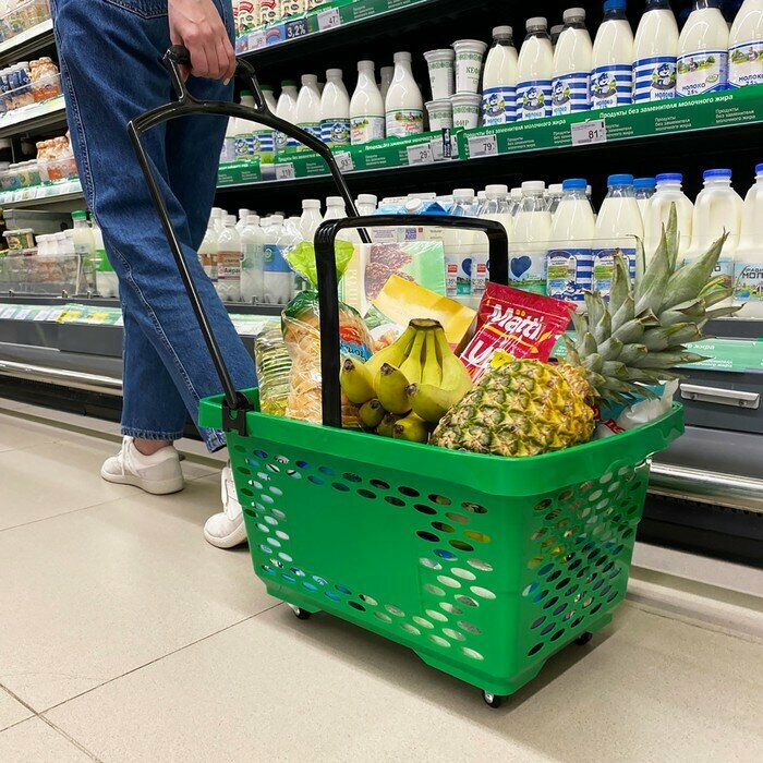 Корзина-тележка на 4 колесах пластиковая, 28 л, с 2 пластиковыми ручками, цвет зелёный