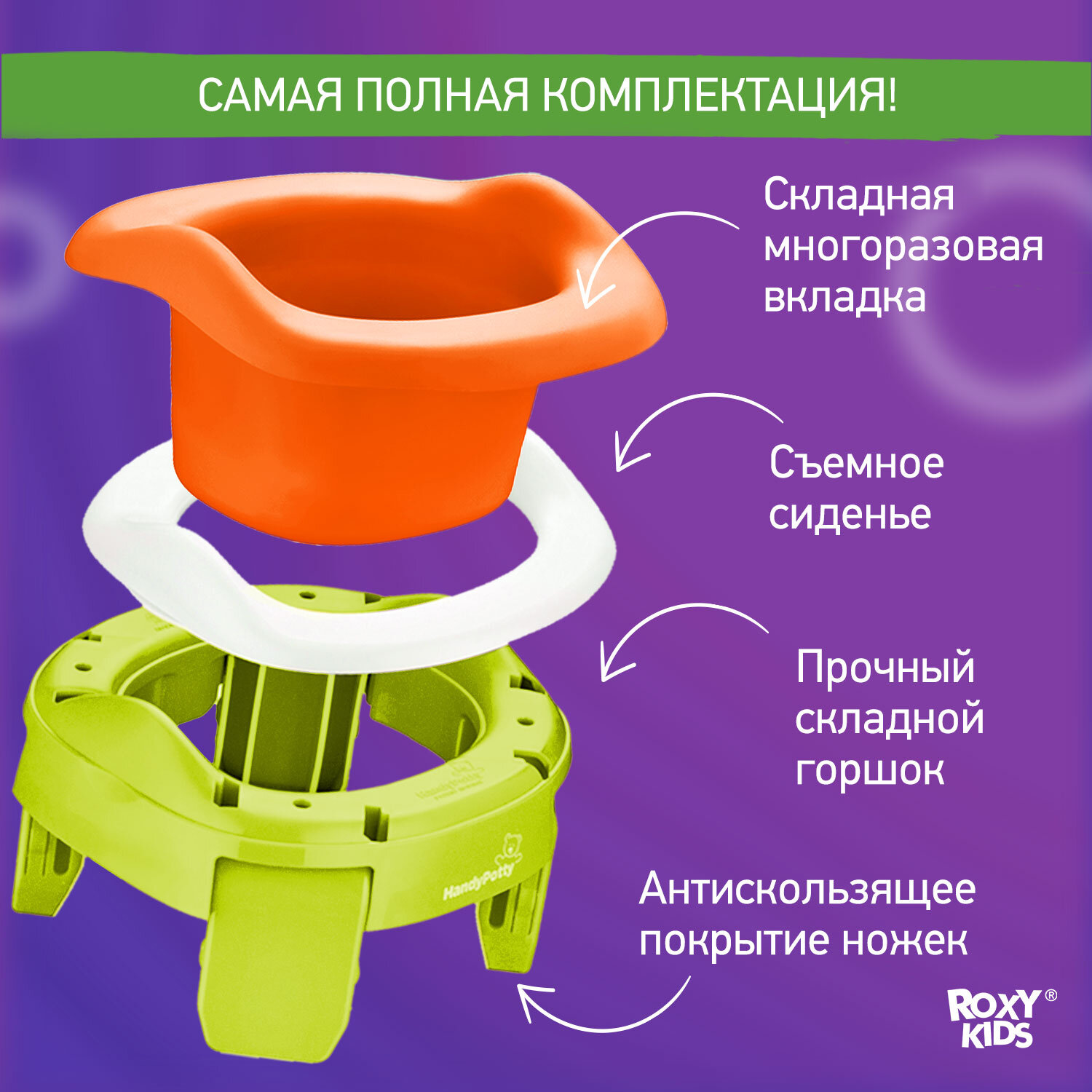 Горшок детский дорожный Roxy Kids дорожный, накладка на унитаз, складной, HandyPotty, цвет лайм и универсальная вкладка для горшка оранжевая (HP-255C)