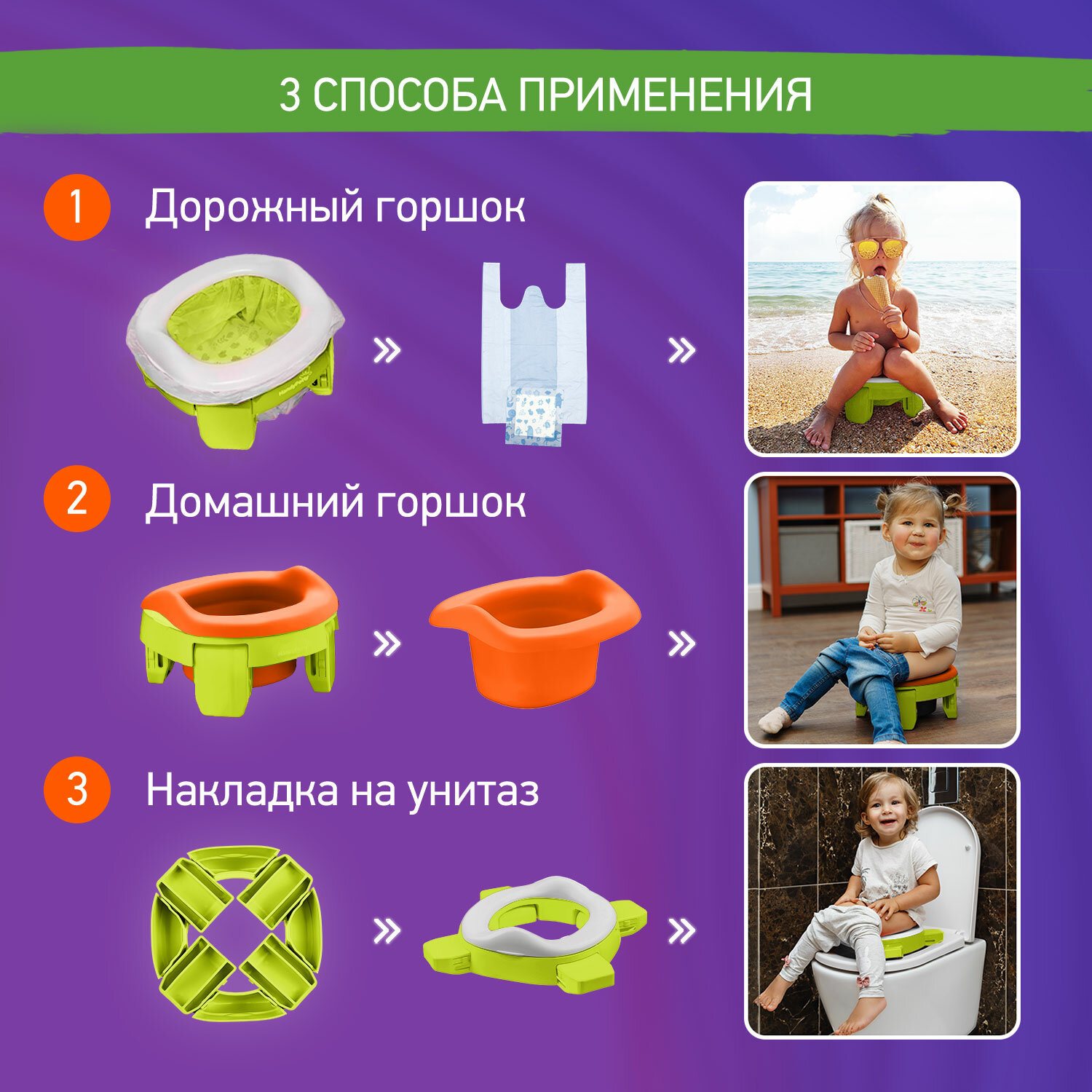 СохранитьRoxy-kids Горшок детский дорожный, накладка на унитаз, складной, HandyPotty цвет лайм и универсальная вкладка для горшка оранжевая интересное: