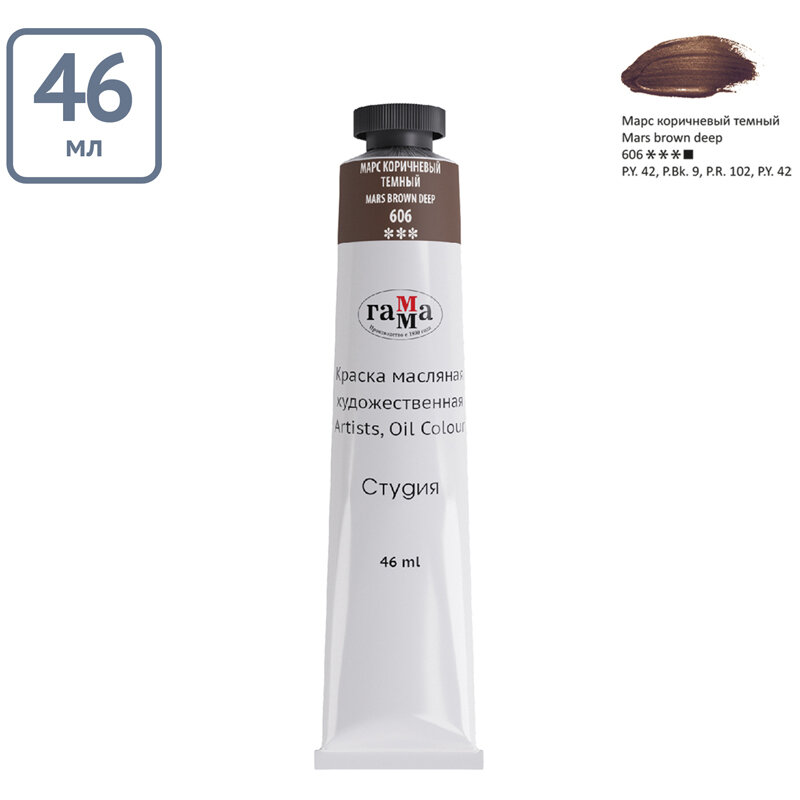 Купить Гамма Краска масляная в тубе 46 мл, Гамма "Студия", №606 марс тёмно-коричневый