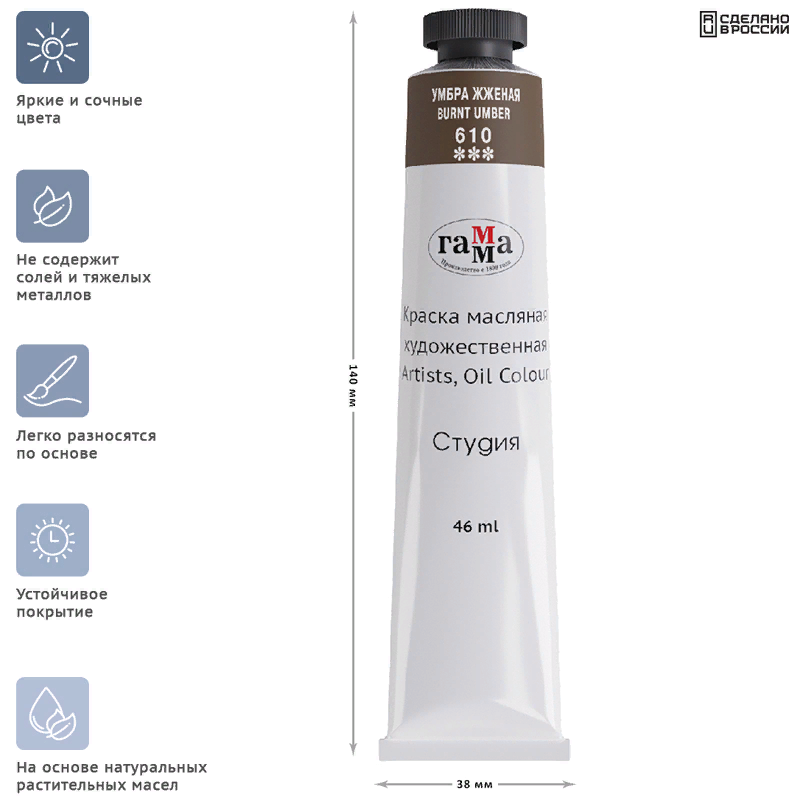 Гамма Краска масляная художественная «Студия», туба №10, 46 мл, марс коричневый светлый
