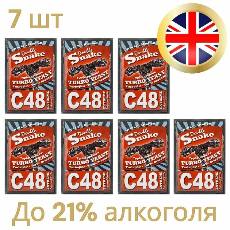 Турбо дрожжи Double Snake C48, 130 гр (Дабл Снейк С48 спиртовые) 7 шт.
