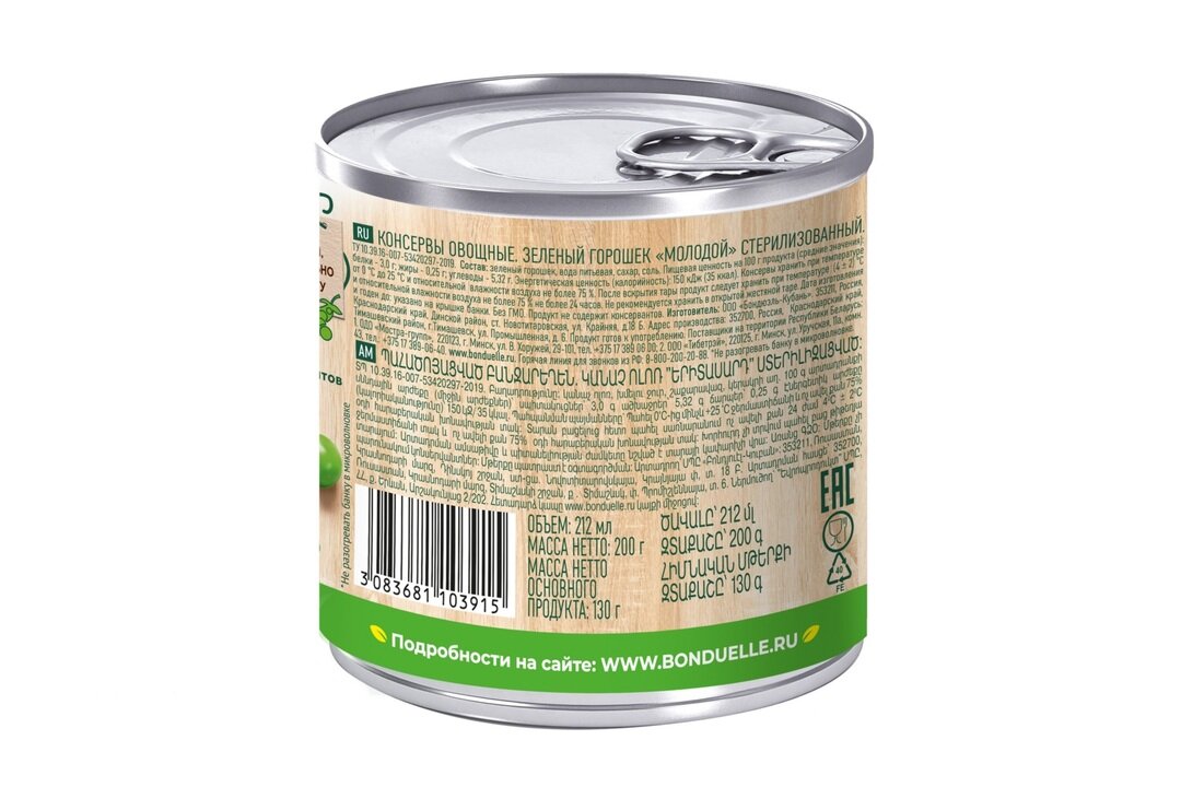 Горошек Bonduelle зеленый молодой, жестяная банка
