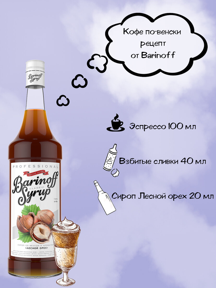 Сироп Barinoff Лесной орех (для кофе, коктейлей, десертов, лимонада и мороженого), 1л