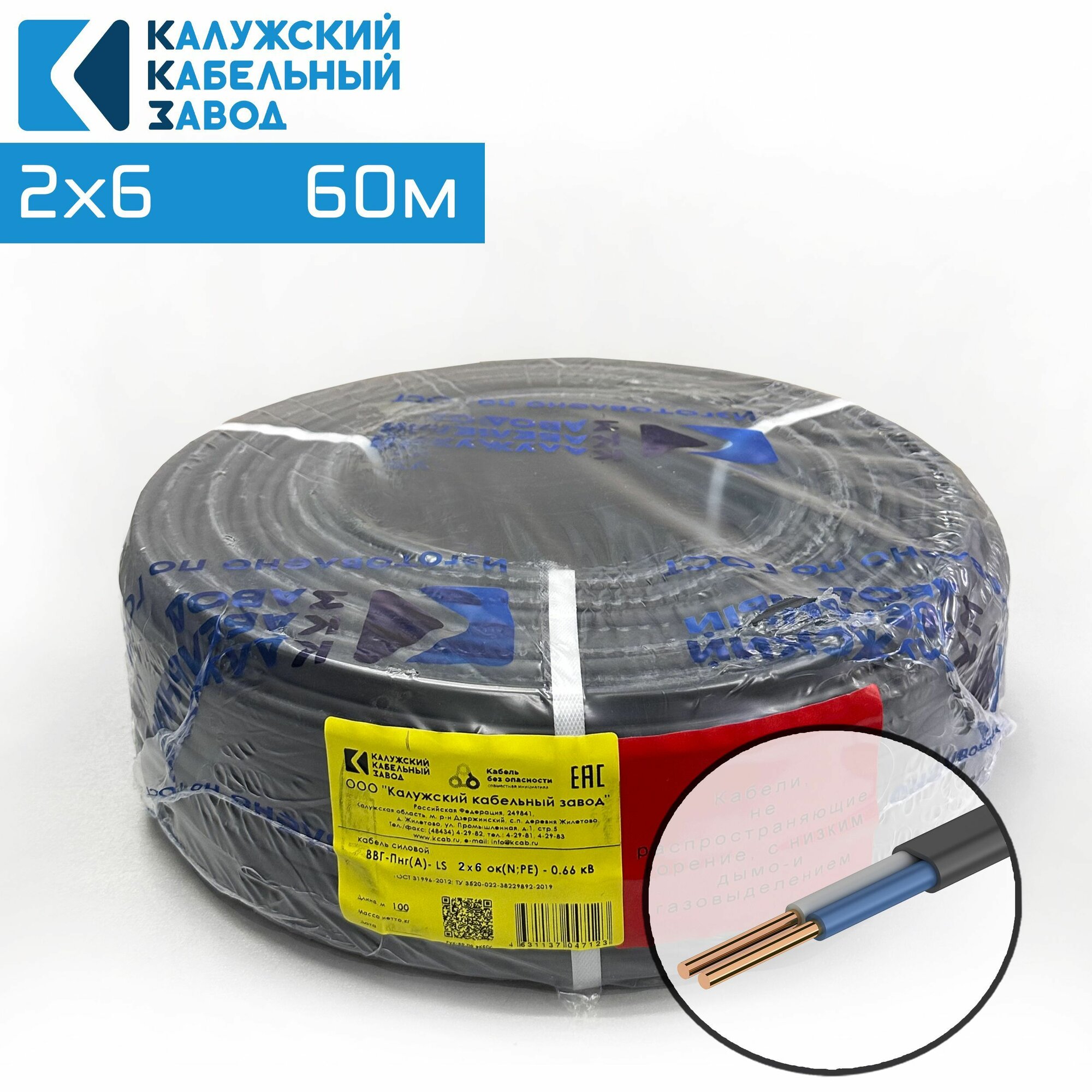 Кабель силовой ВВГ-Пнг(А)-LS 2х6,0 кв. мм калужский кабельный завод ГОСТ черный 15 м