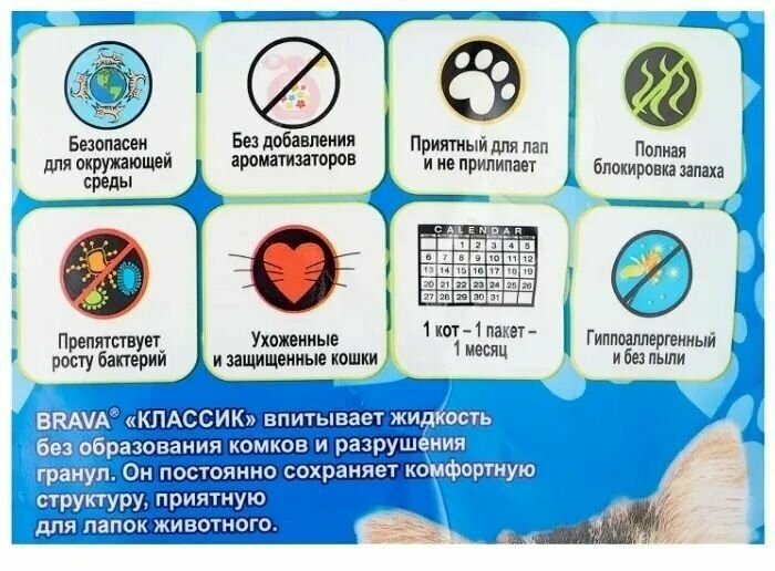 | Плюсы: | Насыпная в лоток толстым слоем, как советует инструкция, забываешь про смену и мытьё на месяц.У меня двое, поэтому мне хватает на 15-16 дней. Перемешиваю каждое утро и убираю лишнее в унитаз. Запах блокирует хорошо, к лапам почти не липнет из-за крупного помола. |